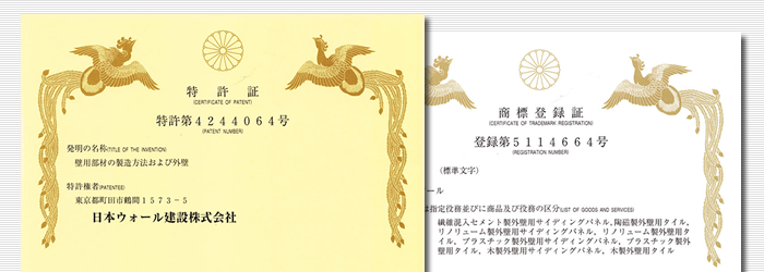コーナー材を使わないサイディング コーナーレスボード「KadoR(カドアール)」は、平成21年1月(許第4244064号)と平成21年8月(許第4573905号)に特許を取得しました。